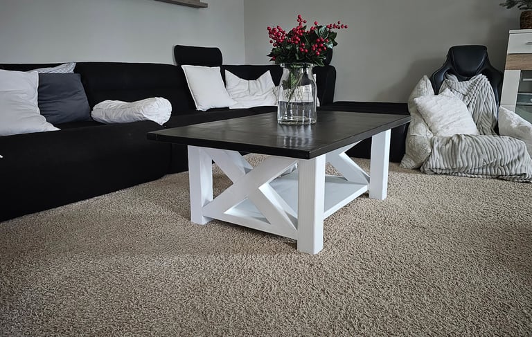 I built this farmhouse coffee table using plans and videos I found on the internet (linked below). This build has the X coffee table design using 3x3 legs. The dark walnut stained top and semi gloss white painted bottom, looks phenomenal combined together. I sealed it with minwax paste finishing wax for protection. I completed this project using the Chunky farmhouse coffee table plans and video linked below. This was built with "scrapwood" that I had laying around in the garage, so its an easy build coffee table that anyone can do with a few tools, especially if you have good materials. I will put the links below to the tools and supplies used for this build. Farmhouse Coffee Table with modified Breadboard Ends, Part 1: The Bottom - YouTube